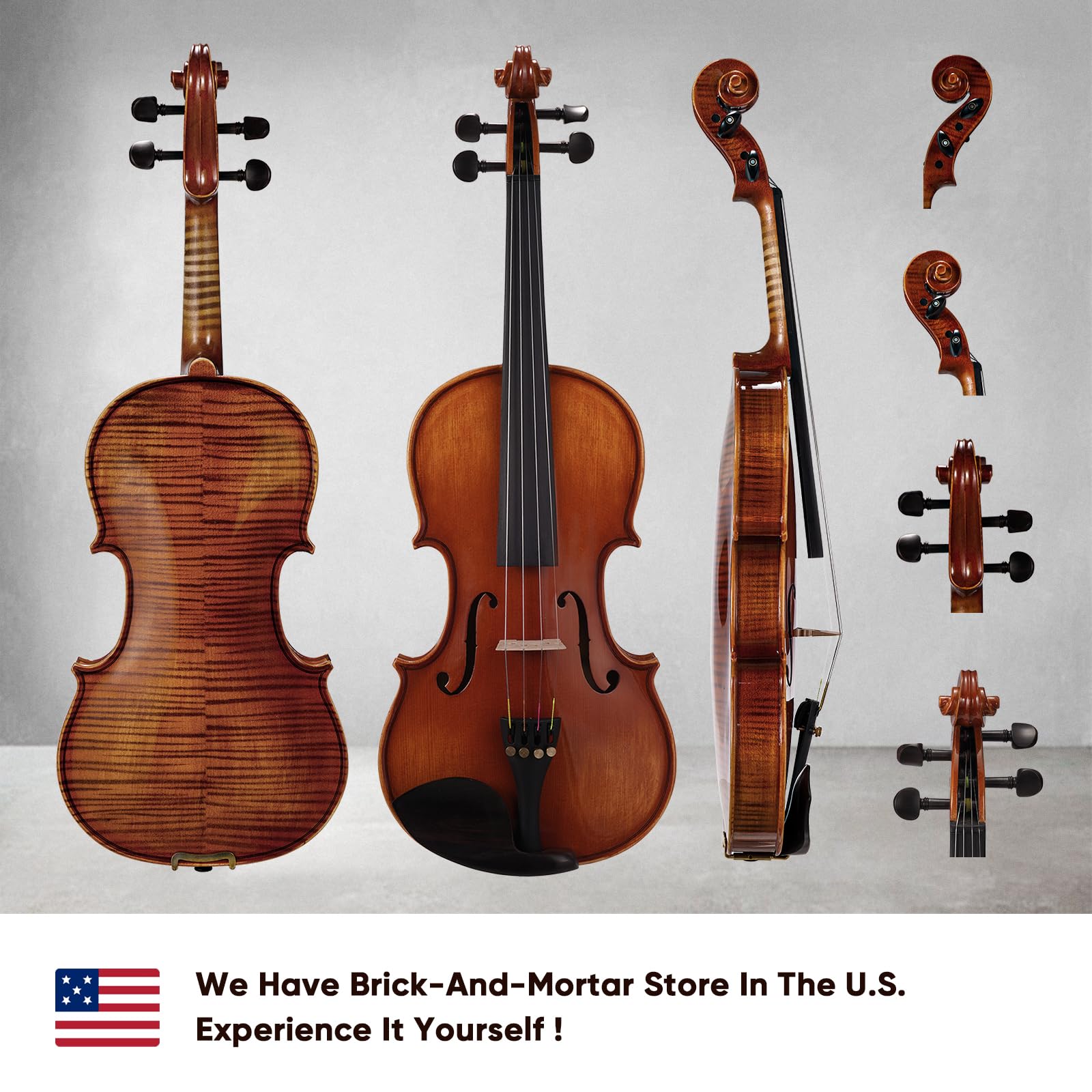 PHOENIX Violin 4/4 Full Size Set, Fiddle Solid Wood for professional Beginners Adults Kid with Ironwood Octagonal Bow & Rosewood Bow Extra strings & Bridge, 2 Rosins, Tuner, Mute, Case (Natural, Full)